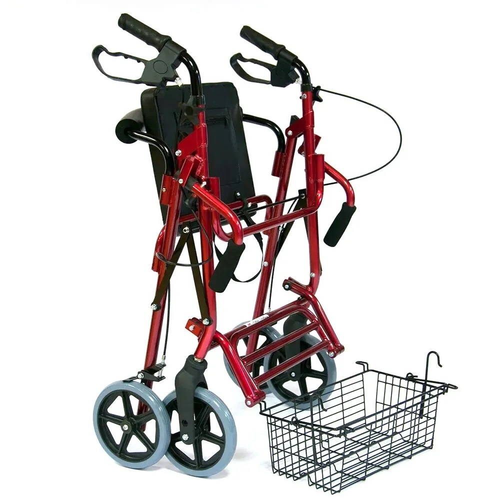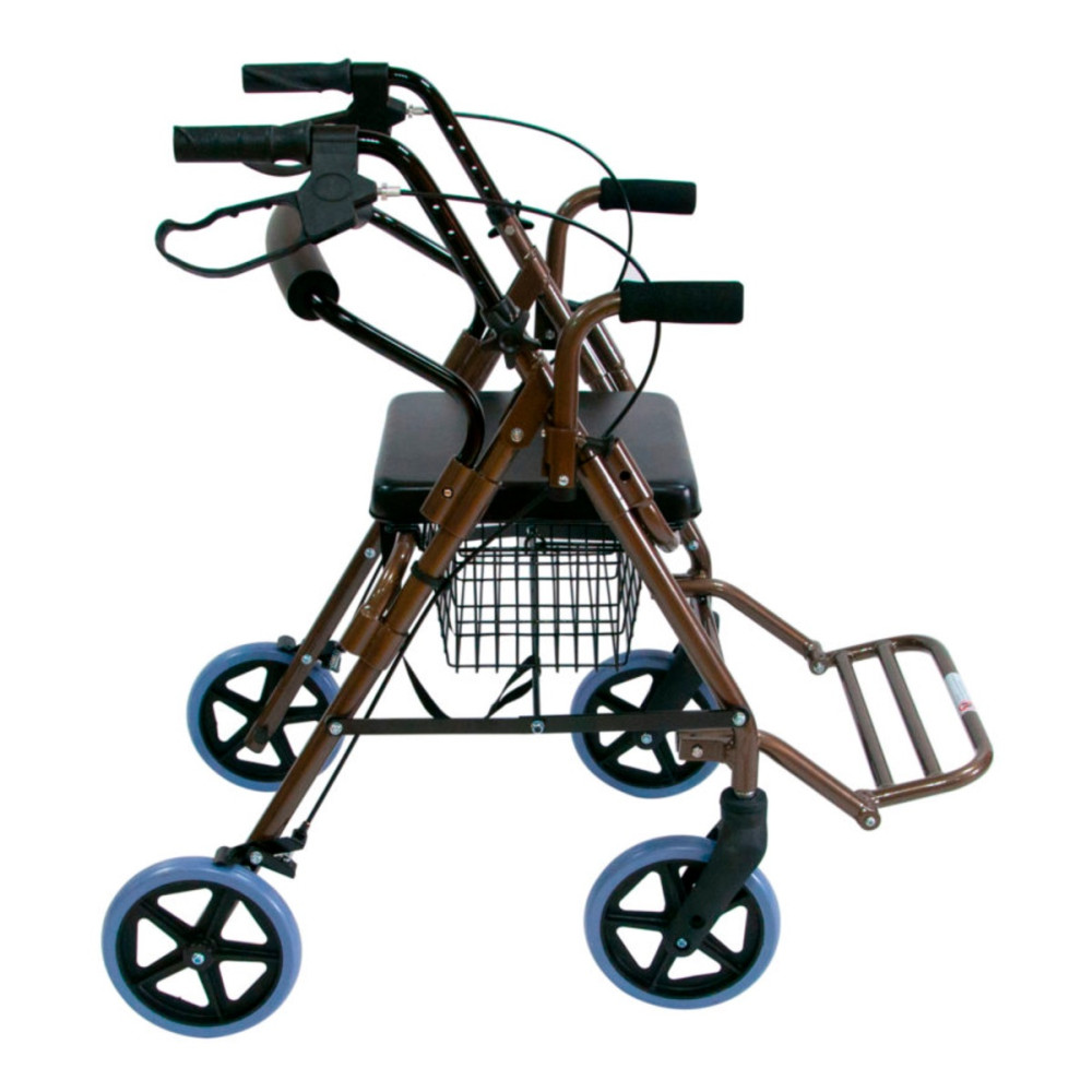 Конструкция выполнена из алюминия с лакокрасочным покрытием, сиденье обшито искусственной кожей. Ролятор оборудован двумя ручными тормозами задних колес c фиксирующей функцией, расположенных на ручках конструкции. Ручки имеют рифленую форму и не скользят в ладонях; регулируются по высоте. Под сиденьем закрепляется вместительная корзина для личных вещей и продуктов. Подножка подвижна и убирается под конструкцию; опору для спины можно отсоединить, а поручни опустить, если ролятор не используется в качестве стула. Ролятор складывается и не занимает много места дома или при транспортировке.