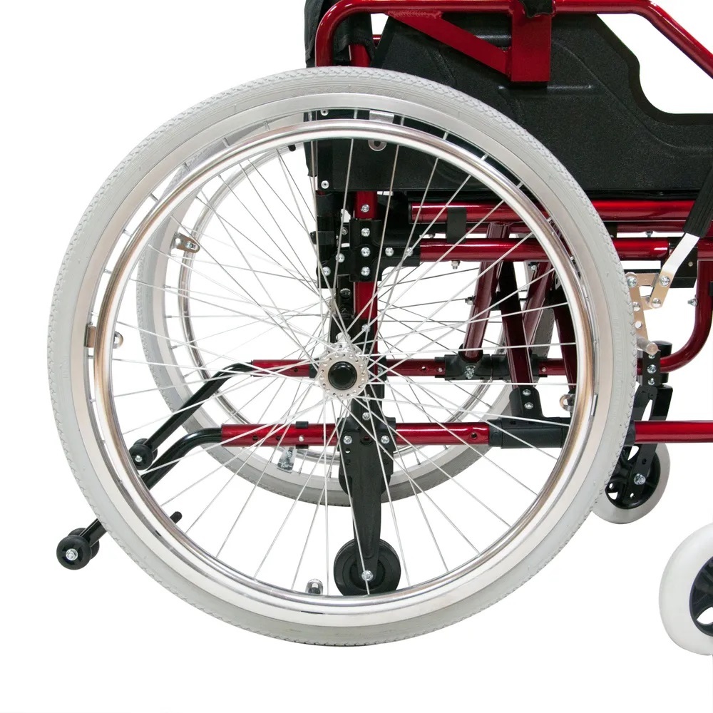 - Колеса: быстросъемные. Задние колеса пневматические, быстросъемные. передние – литые. Благодаря съемным колесам, кресло-коляска уменьшается в габаритах, а дополнительные маленькие колеса позволяют провозить кресло через узкие дверные проемы.