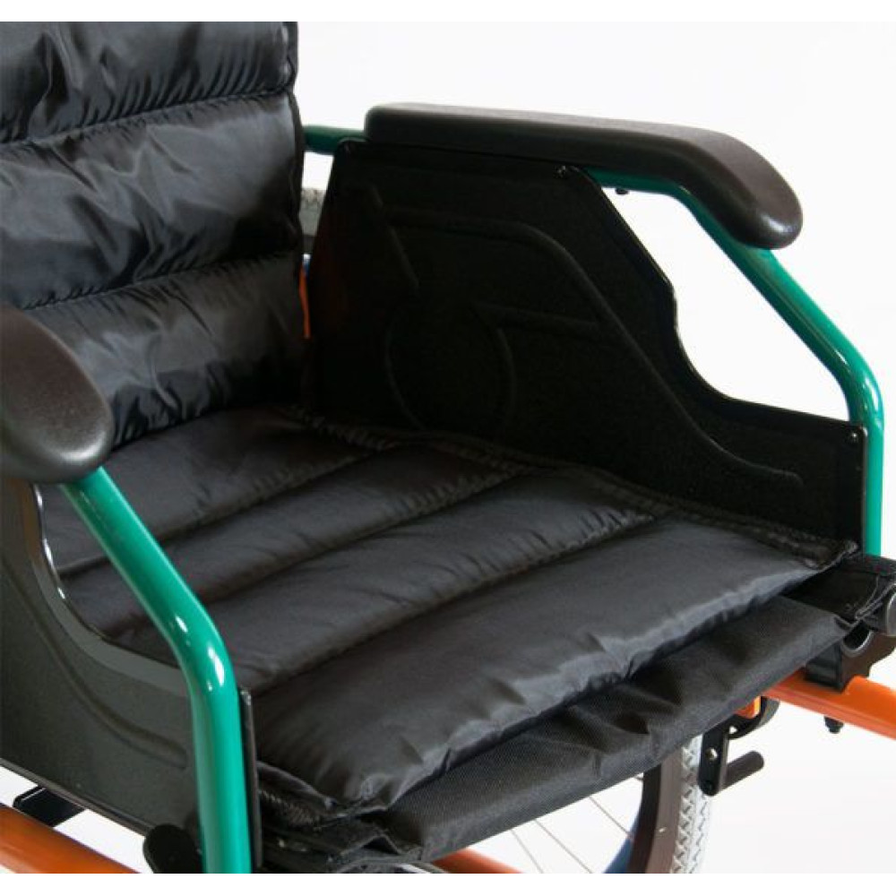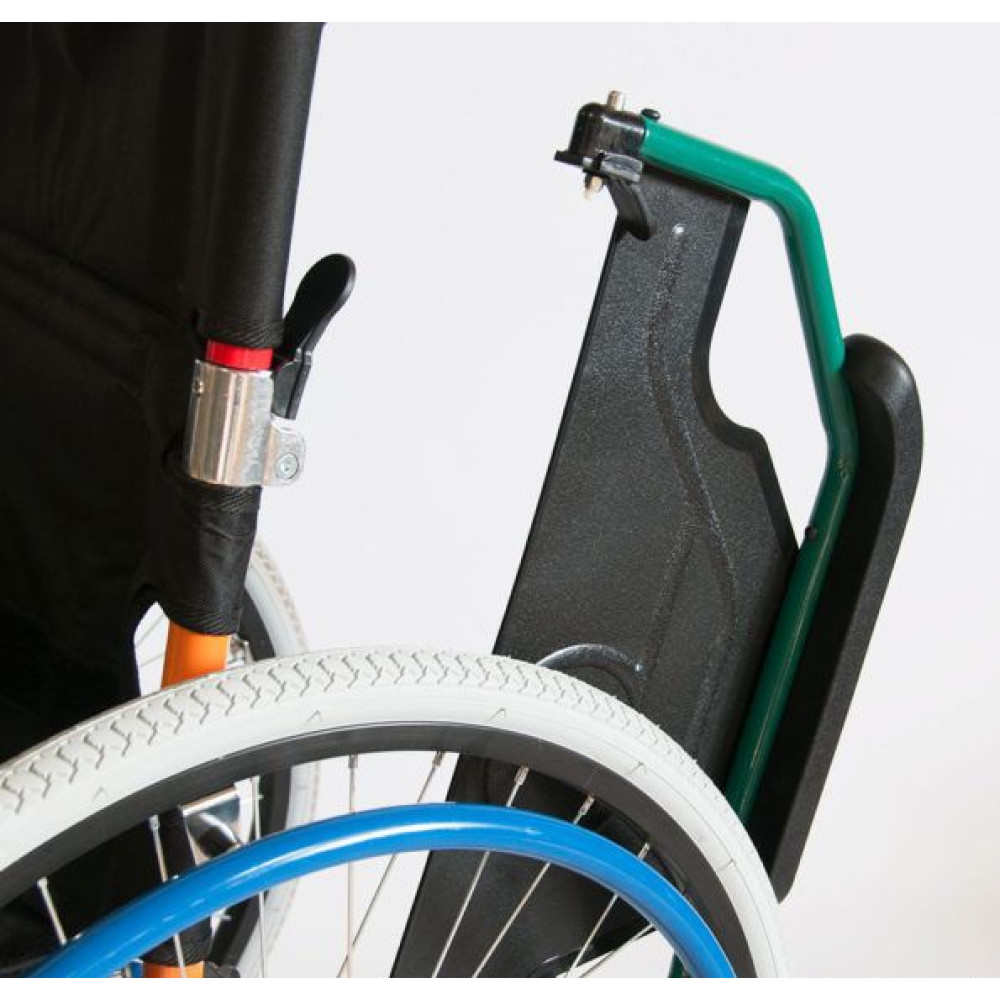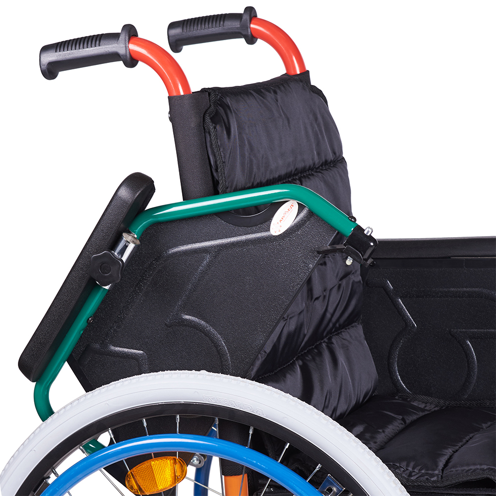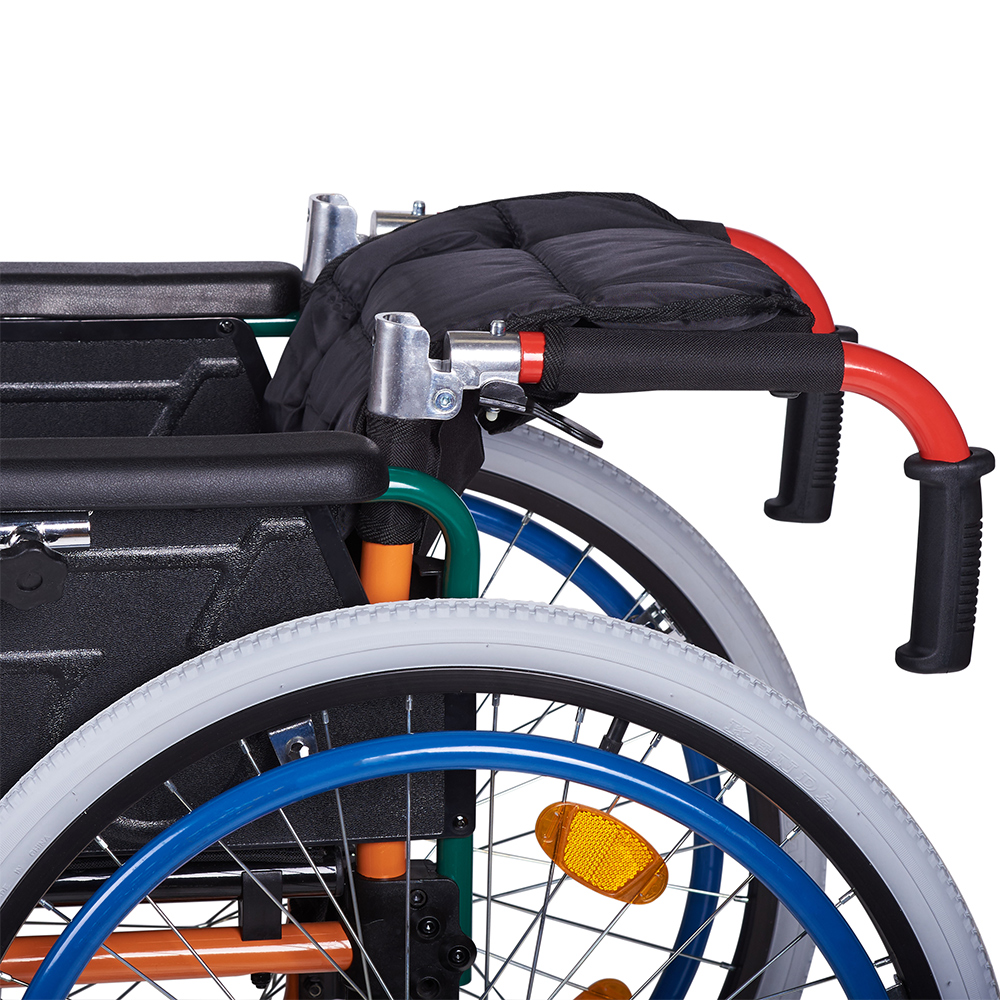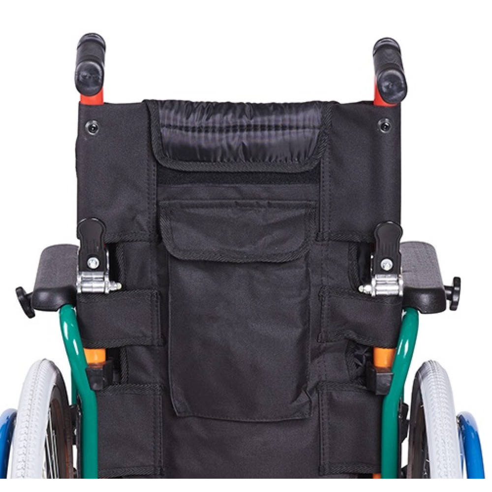 - Складная спинка: уменьшает габариты кресла-коляски, что удобно для транспортировки и хранения. На задней стороне спинки расположен карман для личных вещей.