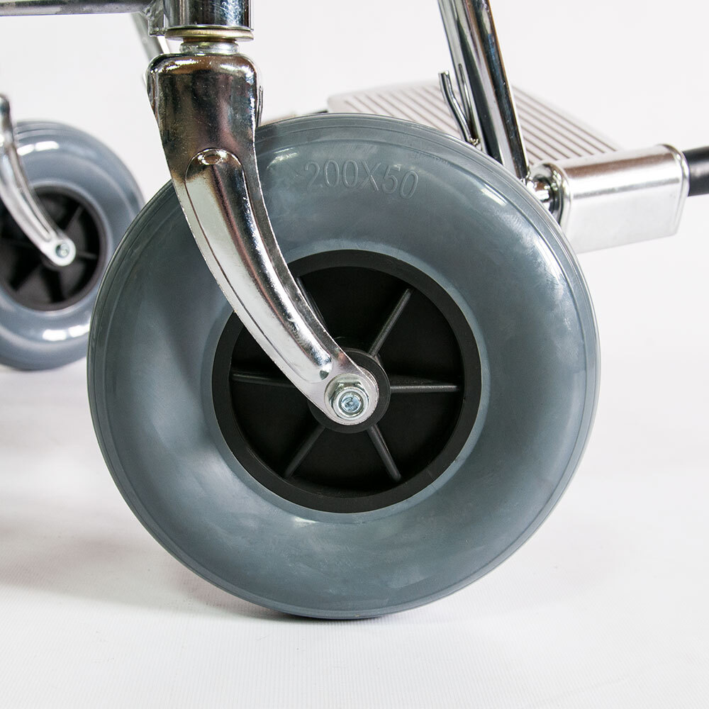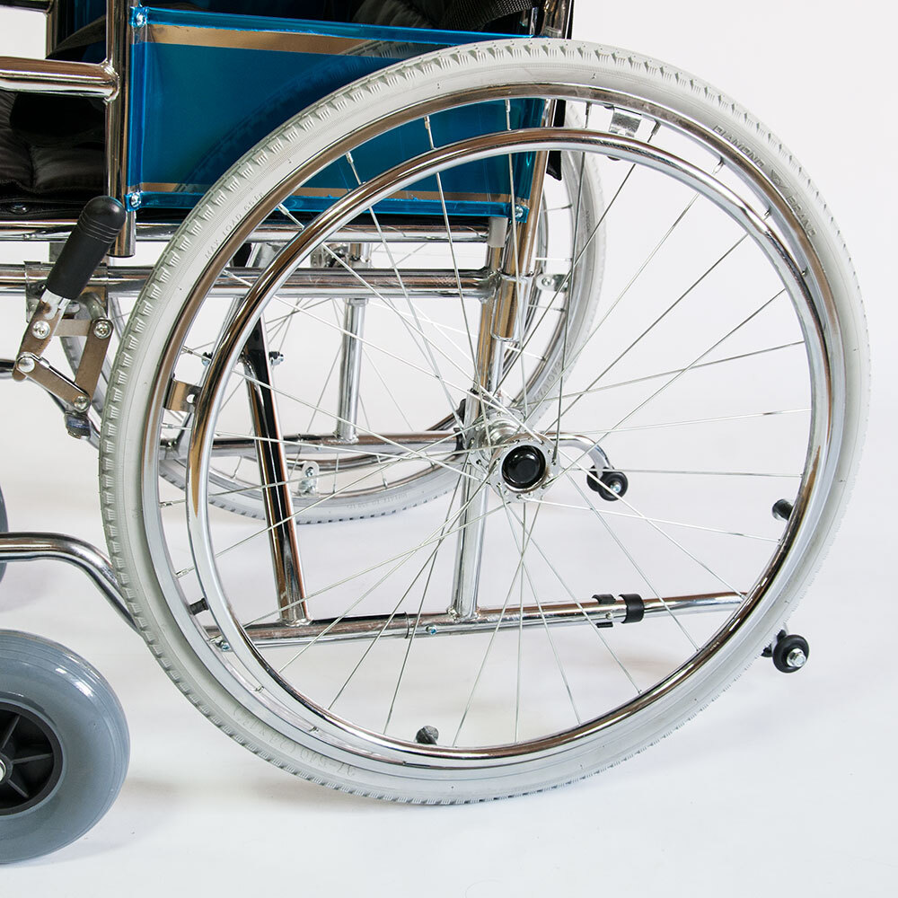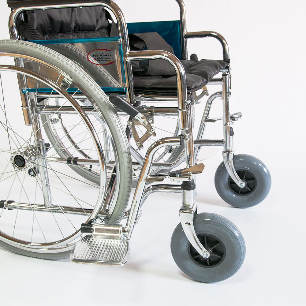 - Колеса: пневматические задние колеса быстросъемные, оборудованы стальными ободами для передвижения; передние колеса – литые, самоориентирующиеся