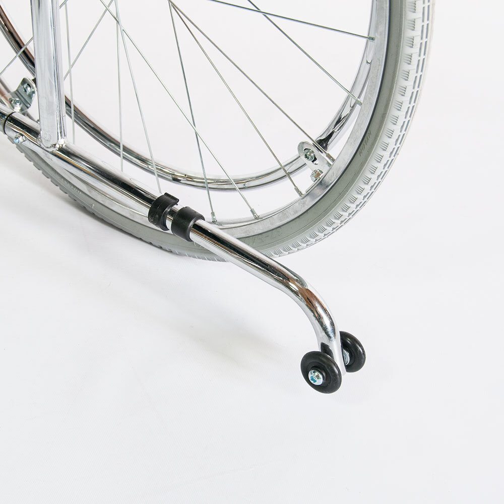 - Устройство для предотвращения опрокидывания (Антиопрокидыватель): предохраняет пользователя от падений и переворачиваний кресла-коляски. Устройство съемное, имеет двойное опорное колесо.
