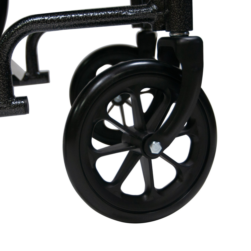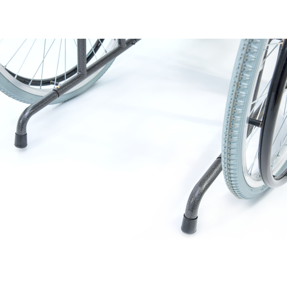 - Колеса: Цельнолитые колеса (с пластиковым ободом) в прогулочном варианте и Цельнолитые колеса (с пластиковым ободом) в комнатном исполнении кресла-коляски.