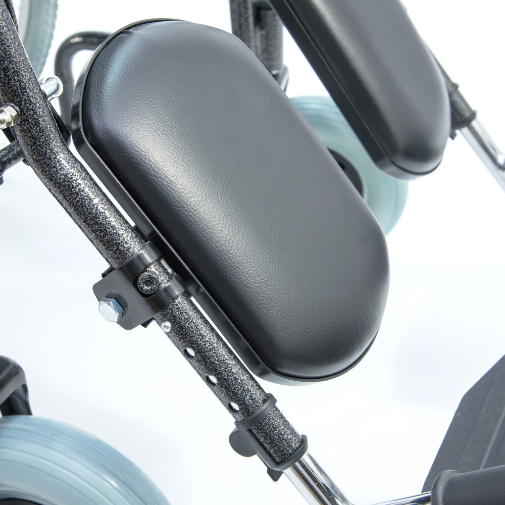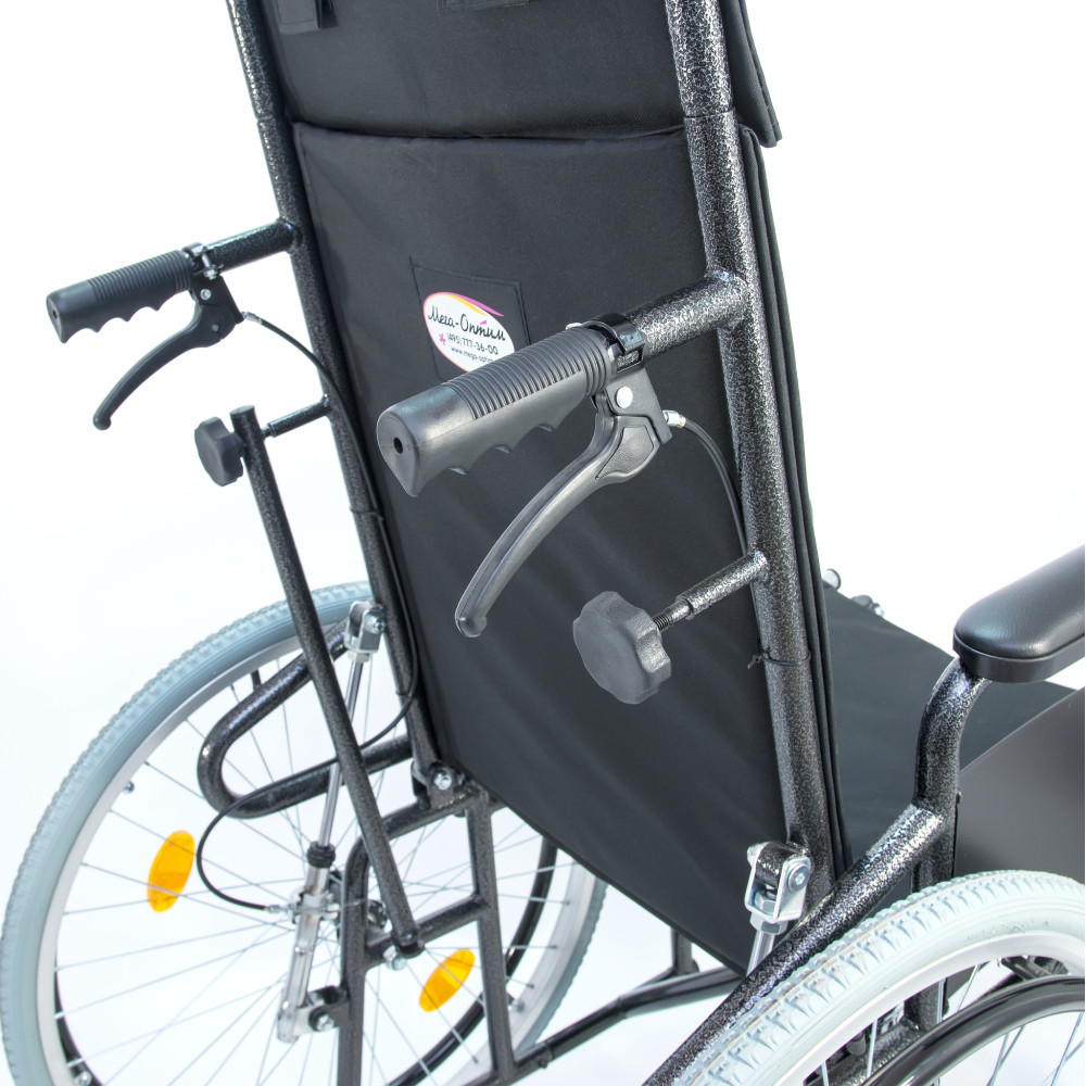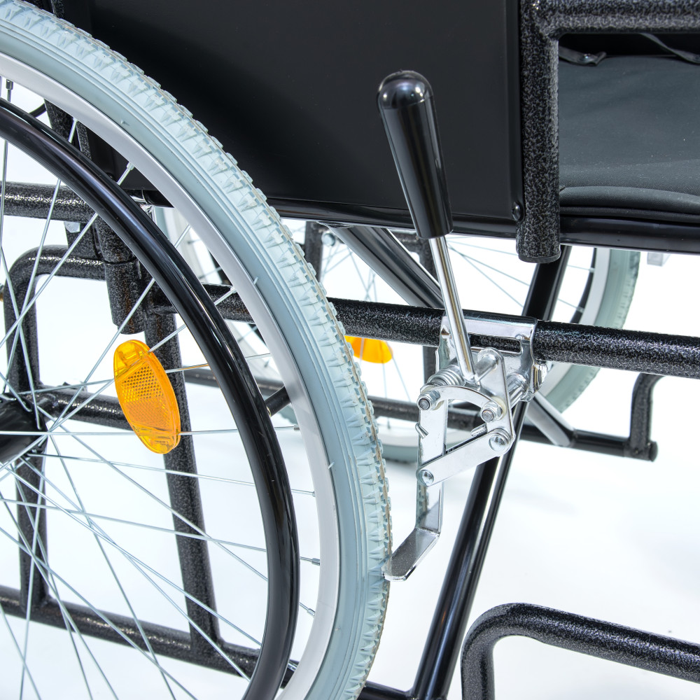 - Тормоза: кресло-коляска снабжена слева и справа рычагами стояночного тормоза, перемещением рычага можно осуществлять торможение кресла-коляски до полного блокирования.
