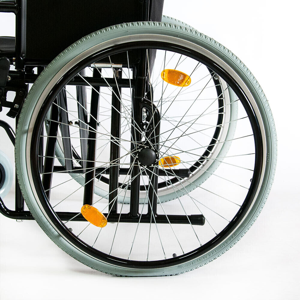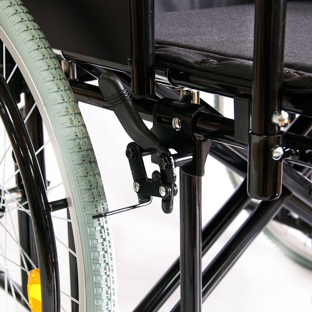 - Стояночный тормоз: кресло-коляска снабжена рычагами стояночного тормоза. С помощью них можно осуществлять торможение кресла-коляски до полного блокирования и предотвратить откат коляски назад