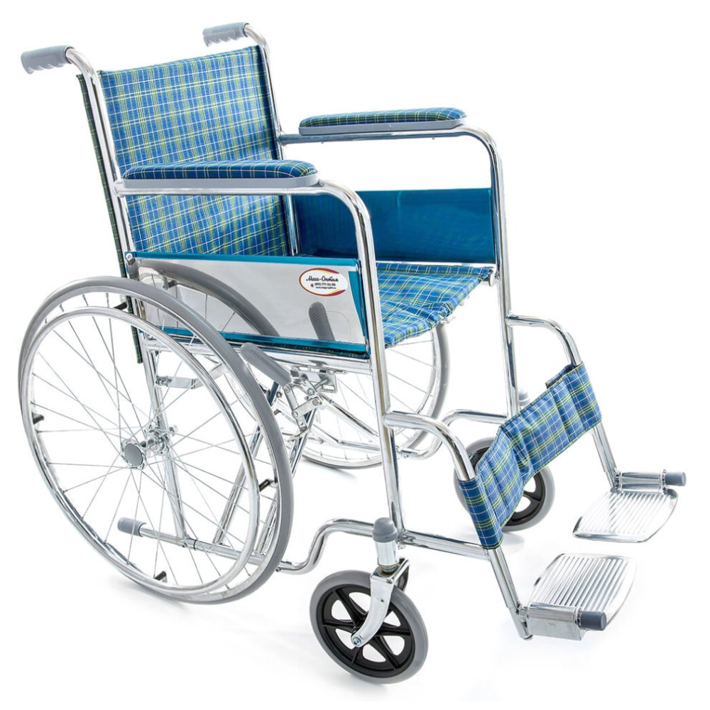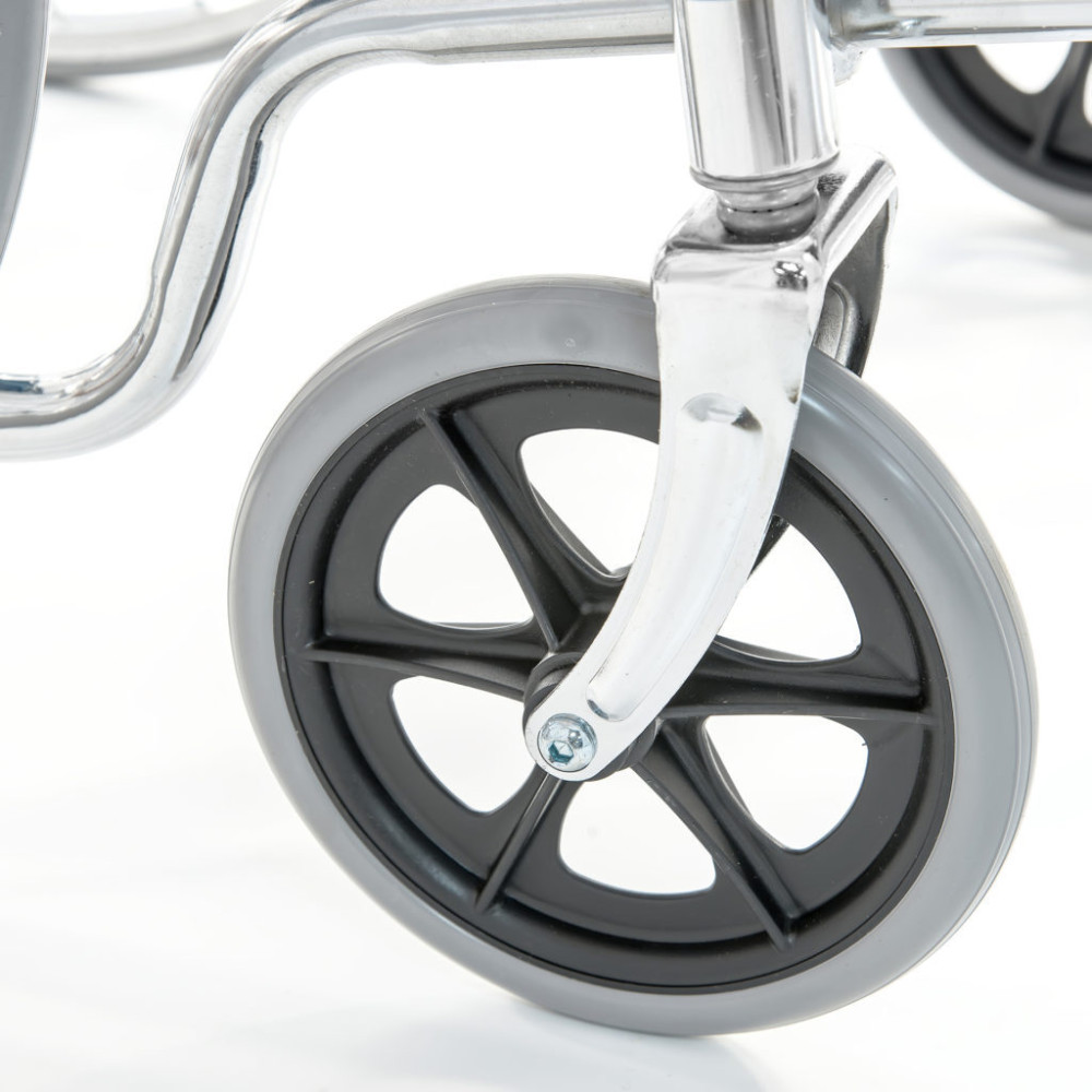 Кресло-коляска механическая облегченная Мега-Оптим FS 874 - это кресло-коляска инвалиднае складная предназначена для передвижения больных и инвалидов с частичной потерей функций опорно-двигательного аппарата в условиях помещений и на площадках с твёрдым покрытием для преодоления незначительных расстояний. Усиленная двойная рама выполнена из стали с хромовым покрытием. Фиксированные подлокотники. Модель оснащена цельнолитыми резиновыми колесами.