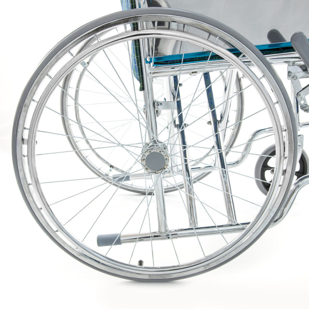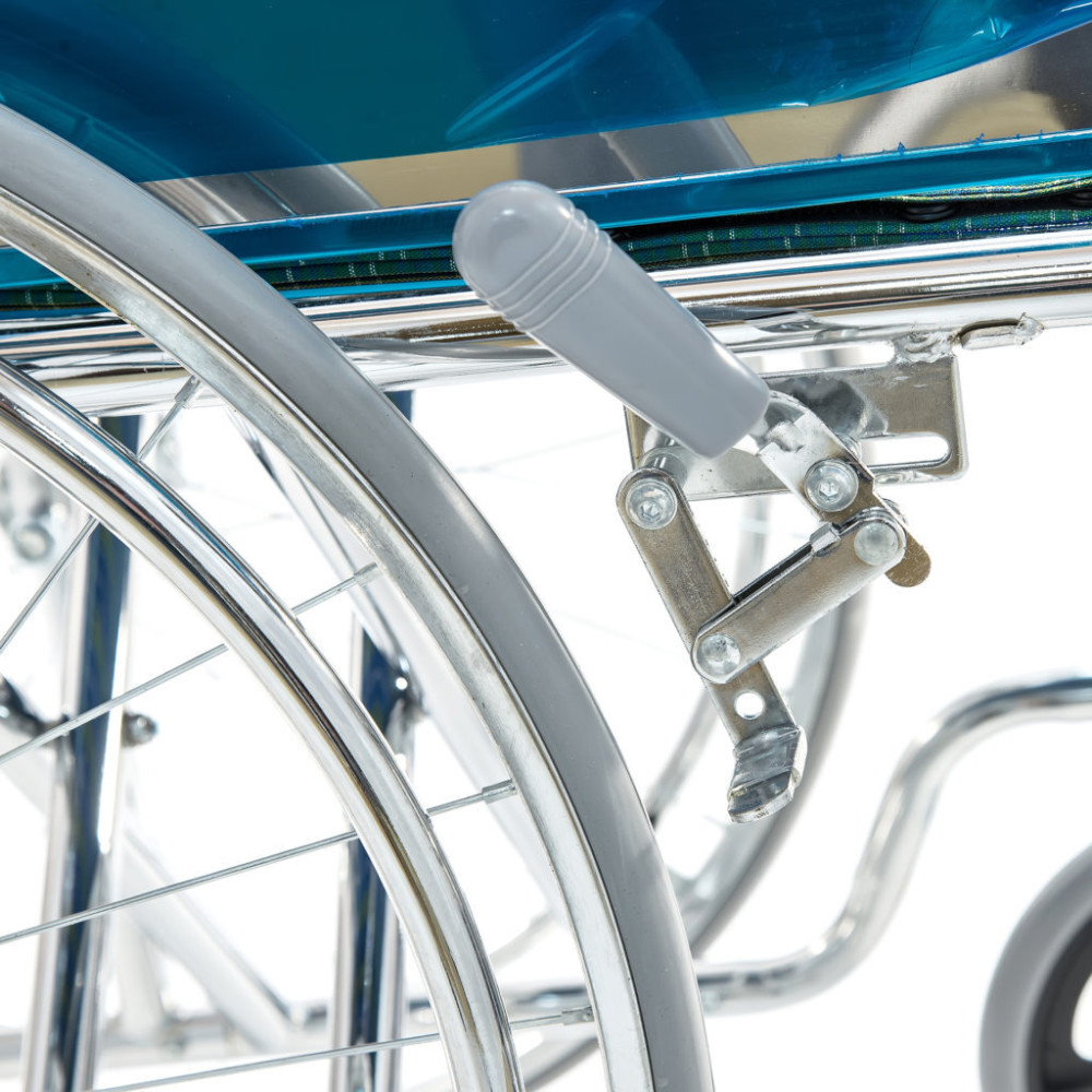- Тормоза: кресло-коляска снабжено рычагом стояночного тормоза, перемещением рычага можно осуществлять торможение