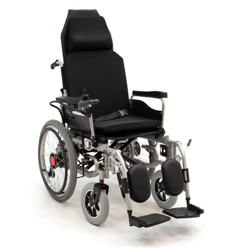 Электроприводное кресло-коляска с возможностью перевода сиденья из сидячего в горизонтальное положение для отдыха, или проведения процедур. Возможность без посторонней помощи в считанные секунды организовать полноценное лежачее место экономит силы и нервы больного за счёт отсутствия передислокаций в коляску и из неё.