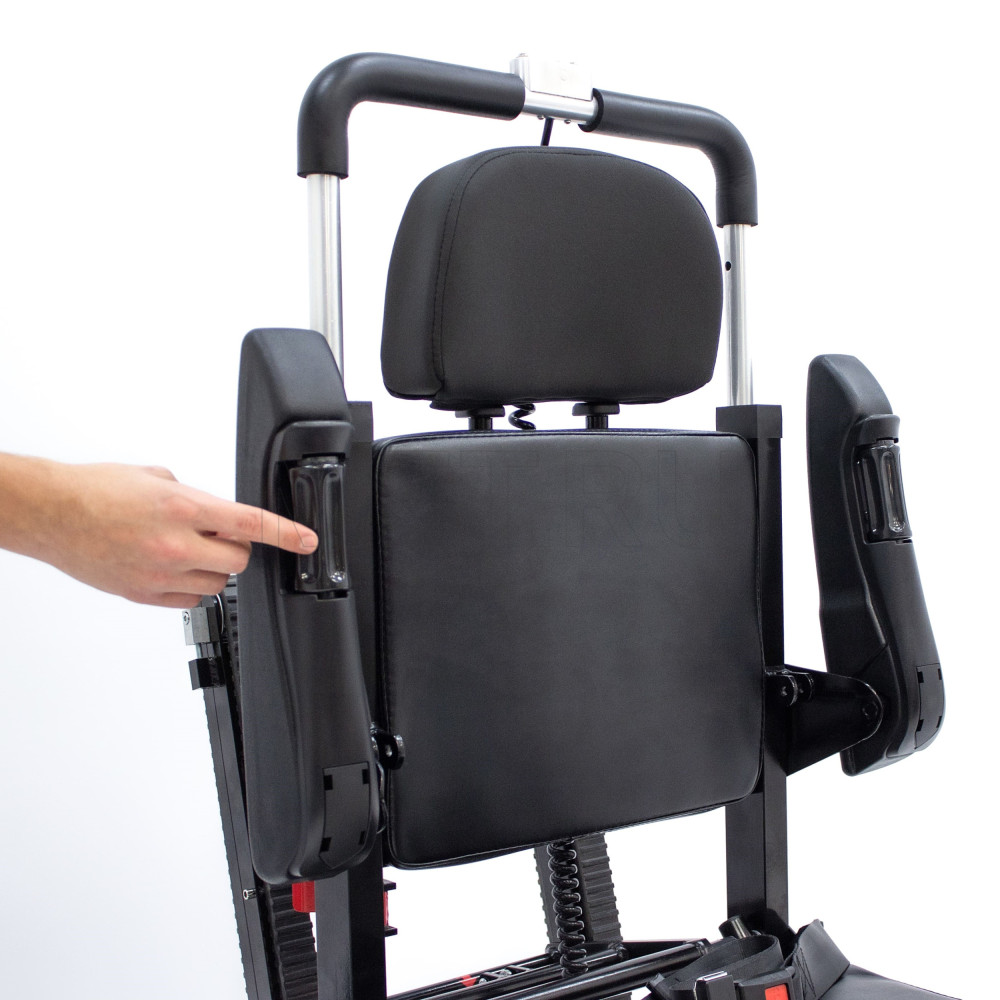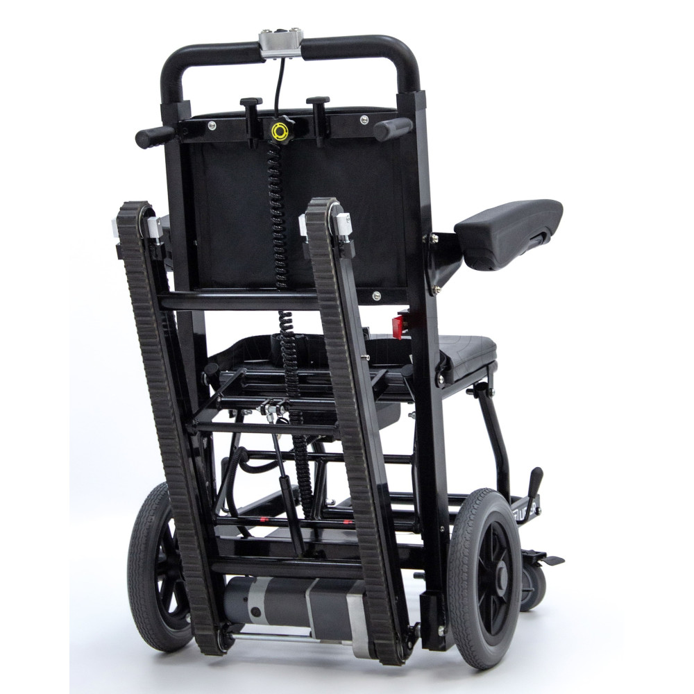 MET LIFTER – мобильное подъемное устройство на гусеничном ходу для безопасного перемещения людей с ограниченной мобильностью по лестницам при помощи сопровождающего лица. MET Lifter с легкостью преодолевает угол наклона лестницы 35°.