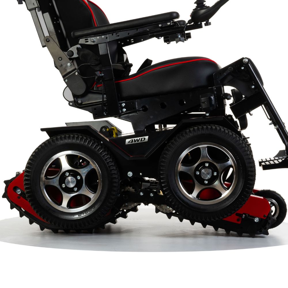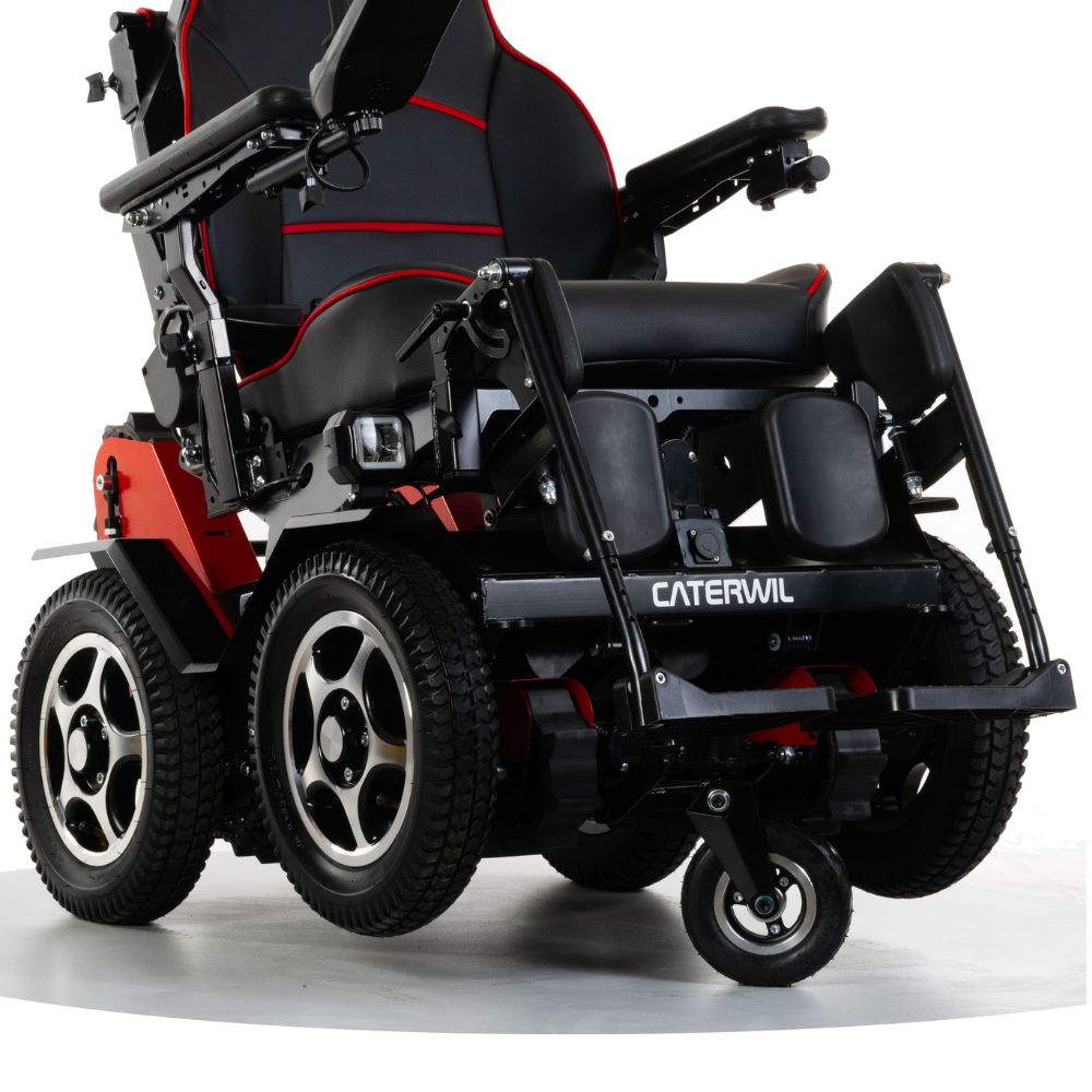 - Caterwil GTS 4WD – это полноприводная версия ступенькоходной коляски Caterwil. Коляска имеет 4 ведущих колеса и гусеничный привод для подъема по ступеням. Полный привод позволяет осуществлять разворот на месте в ограниченном пространстве.