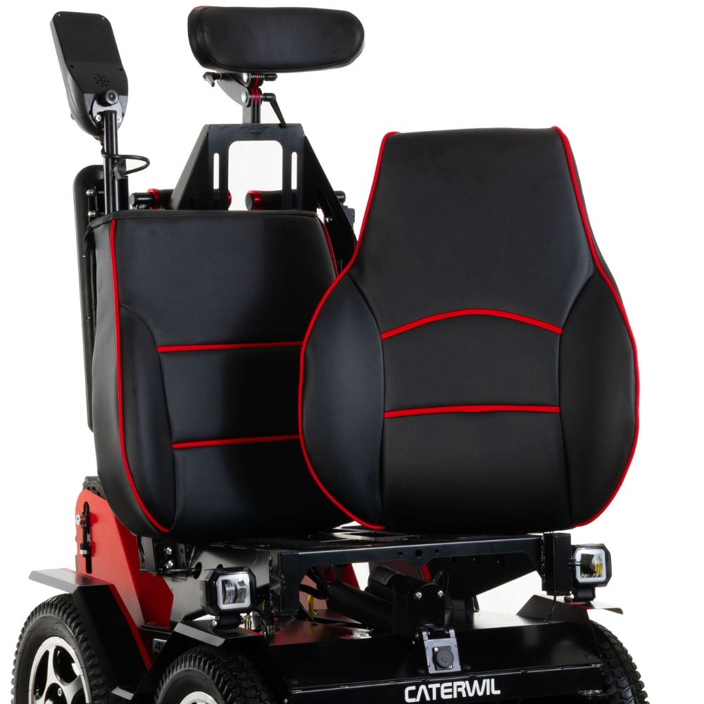 - Сиденье коляски-ступенькохода можно сложить. Это позволяет перевозить Caterwil в автомобилях типа “кроссовер”. С коляской Caterwil 4WD также можно путешествовать на поездах в специальных вагонах.