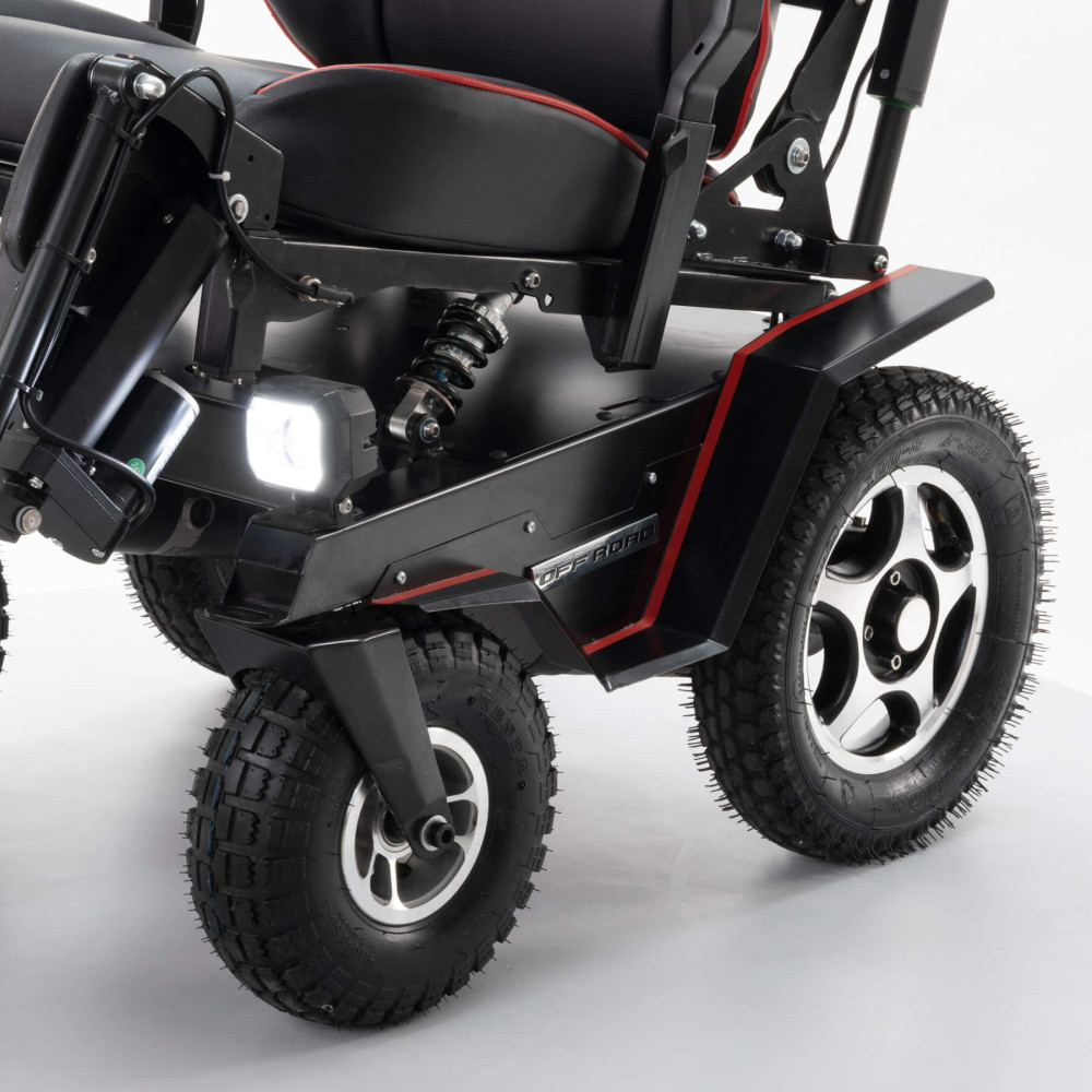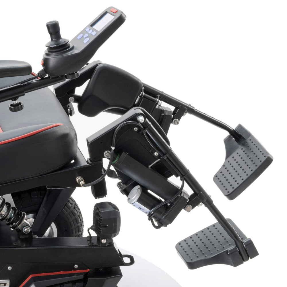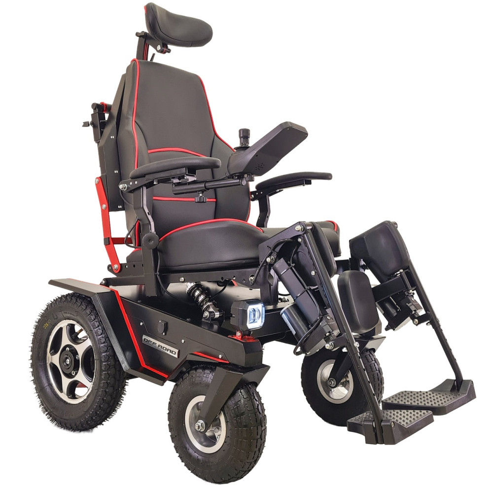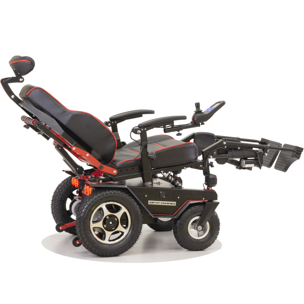 Кресло-коляска высокой проходимости Caterwil Ultra 5 - это кресло-коляска пятой версии имеет электрорегулировку каждой подножки и электрорегулировку спинки. Доступ к данным функциям осуществляется с пульта коляски. Также на пульте управления можно активировать функцию “Кровать”, когда при нажатии кнопок или джойстика одновременно поднимаются подножки и отклоняется спинка кресла. Таким образом, пользователь легким движением руки может принять горизонтальное положение.