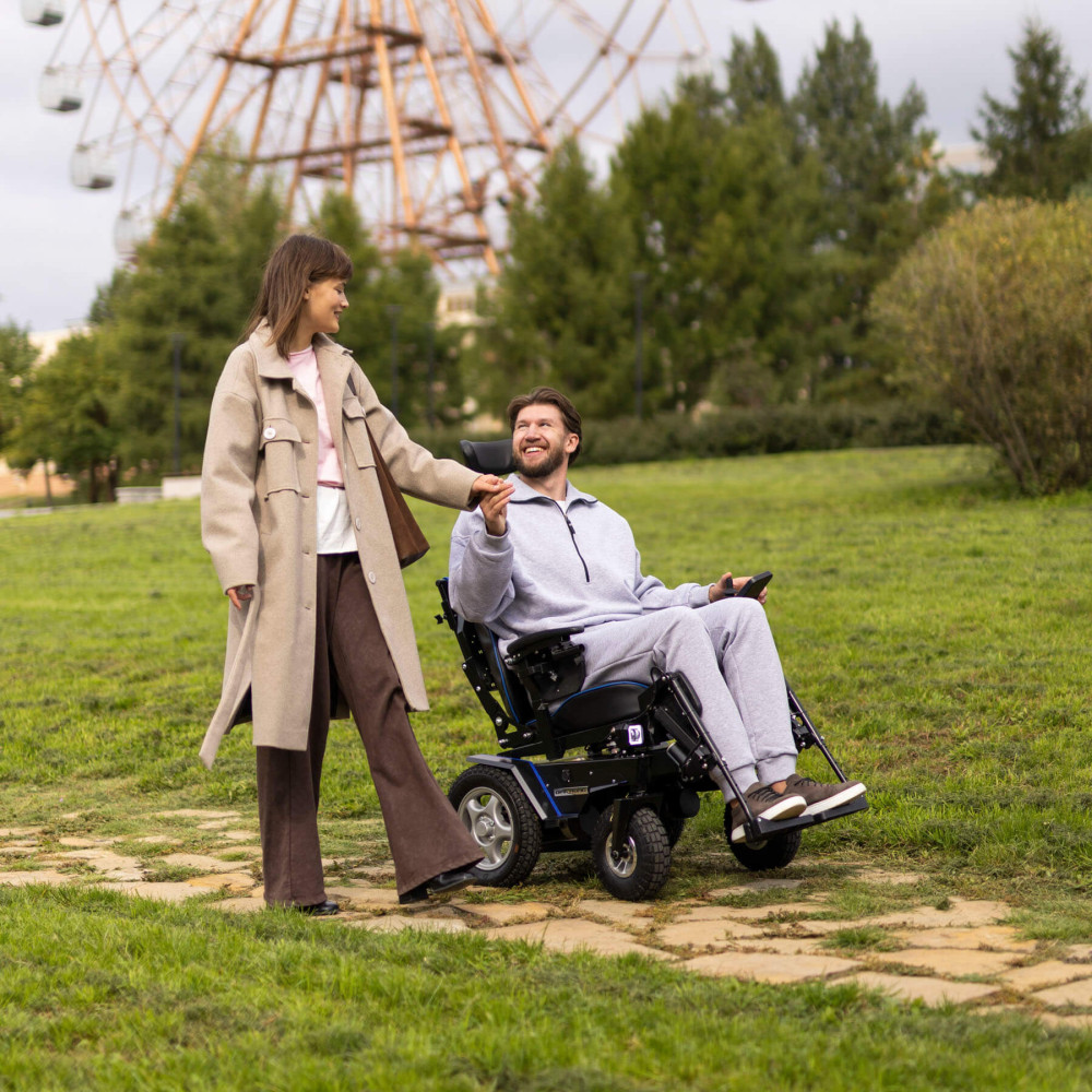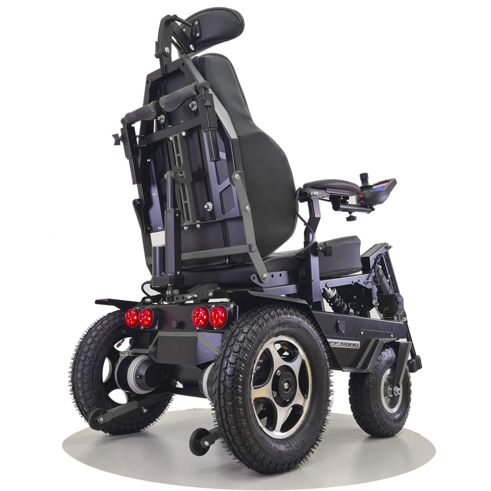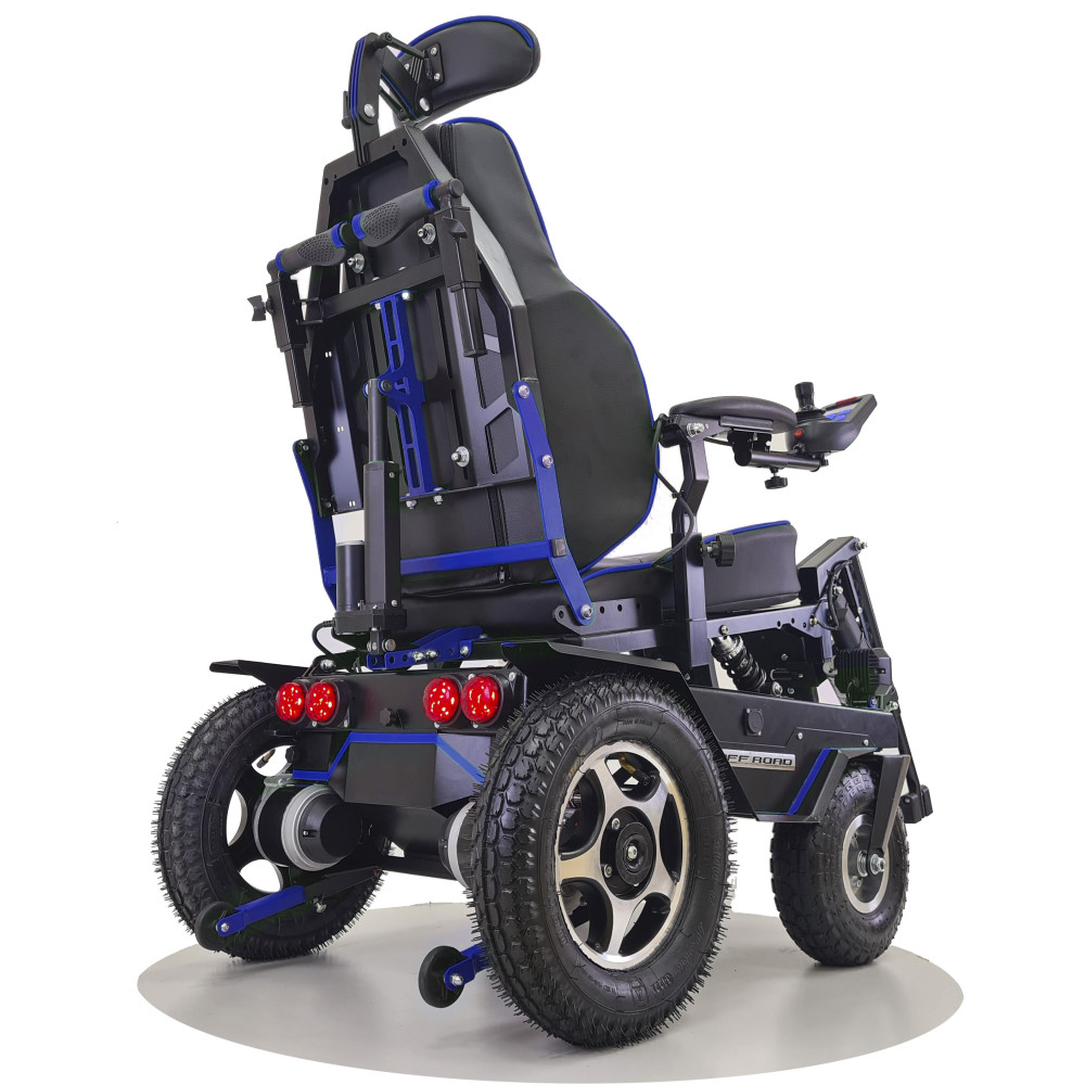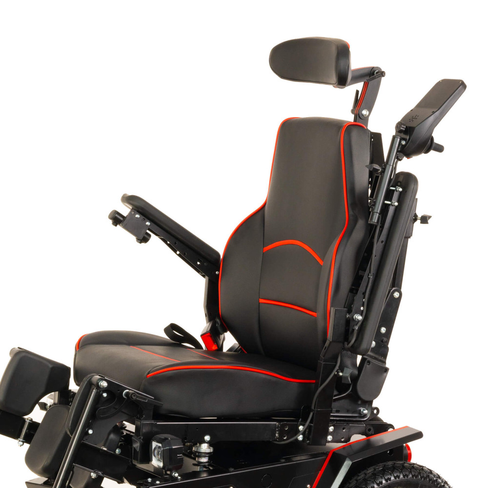 Кресло-коляска высокой проходимости Caterwil Ultra 5 - это кресло-коляска пятой версии имеет электрорегулировку каждой подножки и электрорегулировку спинки. Доступ к данным функциям осуществляется с пульта коляски. Также на пульте управления можно активировать функцию “Кровать”, когда при нажатии кнопок или джойстика одновременно поднимаются подножки и отклоняется спинка кресла. Таким образом, пользователь легким движением руки может принять горизонтальное положение.