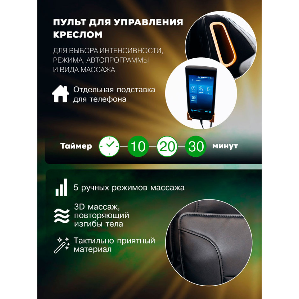 - Кресло оснащено продвинутой системой аэромассажа и 3D-механизмом массажа