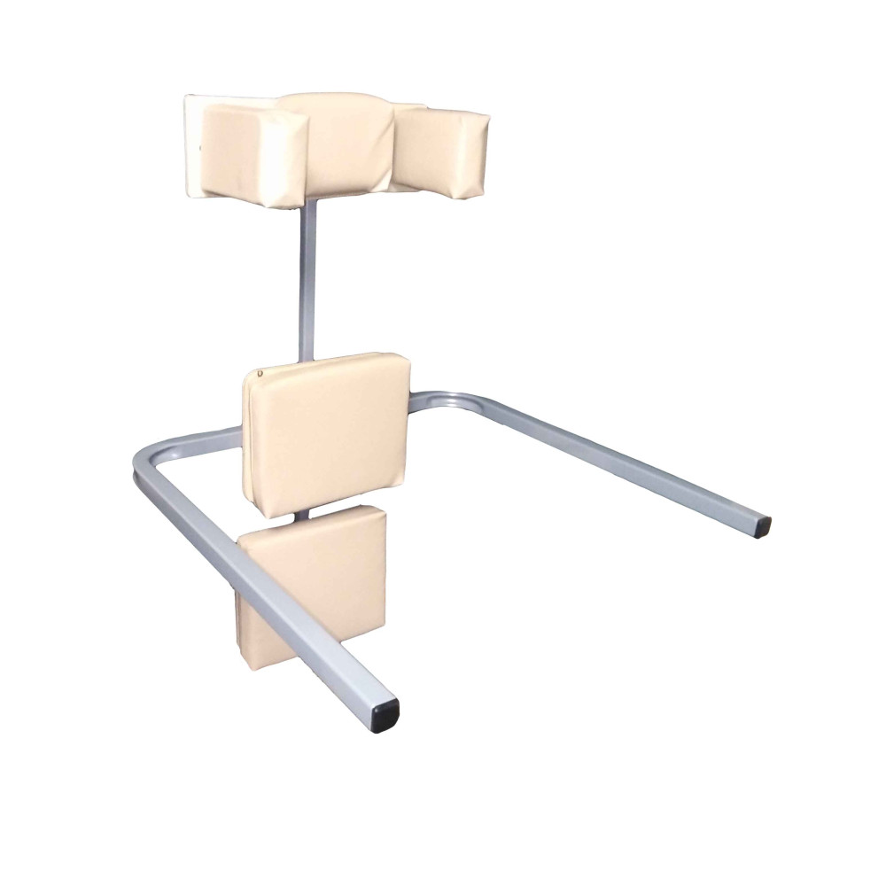 Подголовник жесткий и съемный спинодержатель для опоры ОС-210.2, Я Могу! 210.262 - это съемный спинодержатель и подголовник жесткий предназначен для дополнительной поддержки спины и головы пользователя во время вертикального стояния, состоит из П-образного кронштейна, который вставляется в крепления на столике и вертикальной оси, на которой закреплены подголовник и подушки для поддержки спины и бедер.