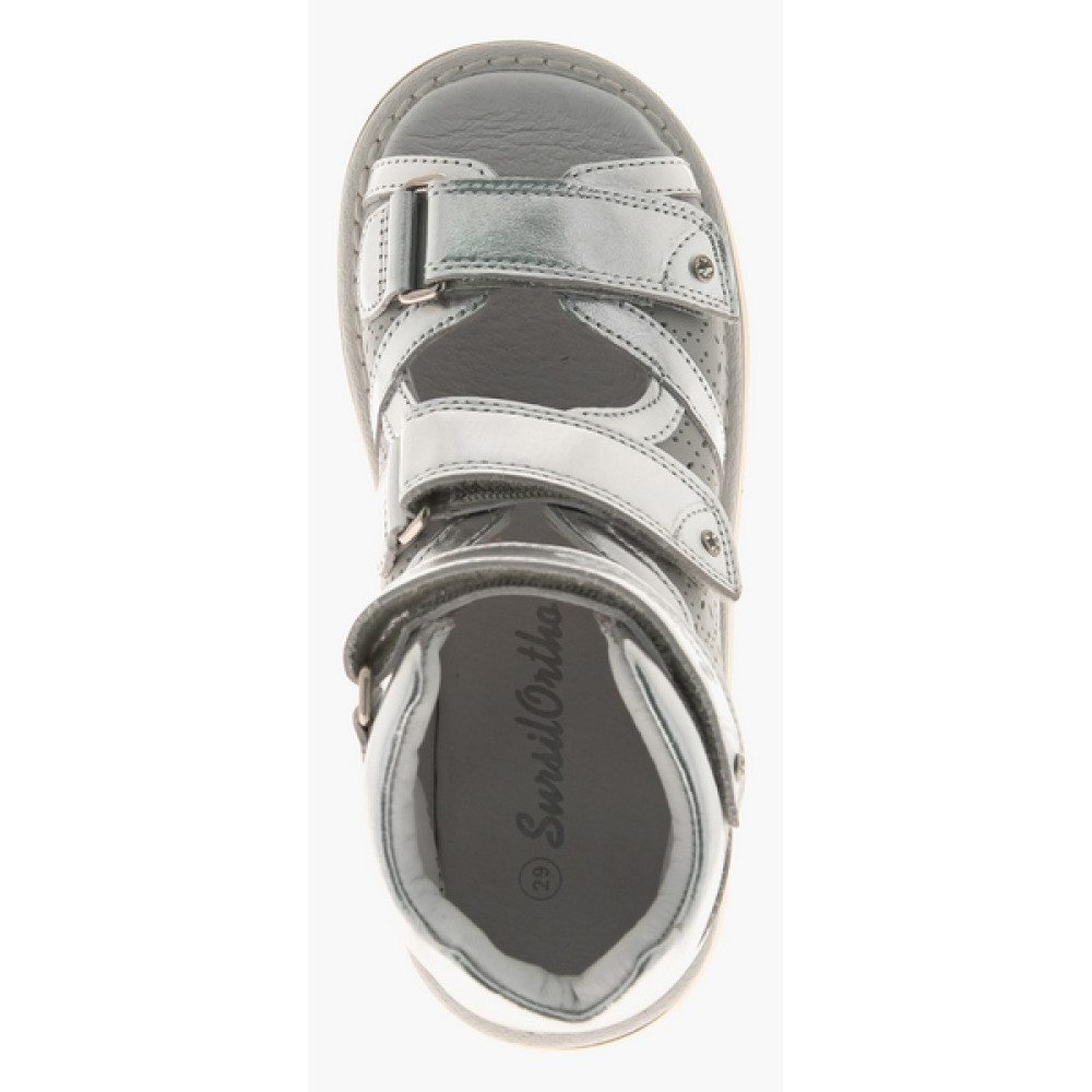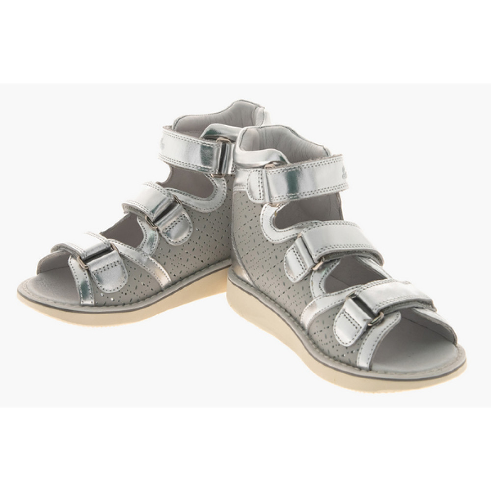 Сандалеты ортопедические Sursil-Ortho 15-313S - это ортопедические стабилизирующие сандалии детские. Рекомендуются при плоскостопии, плоско-вальгусной деформации стопы, неврологических нарушений, церебральном параличе. Конструкция обуви с жестким задником и продленными берцами стабилизирует задний отдел стопы в анатомически правильном положении, обеспечивая устойчивость походки. Подошва AntiValgus с изменением градуса пяточной зоны исключает заваливание стопы вовнутрь. Верх модели и внутренняя подкладка изготовлены из натуральной кожи. Для смягчения давления и профилактики натирания голени верх задника оснащен мягкой вставкой. Три ремешка с липучками велкро обеспечивают полную раскрываемость обуви для облегчения надевания. В модели отсутствует супинатор, что позволяет использовать стельки индивидуального изготовления. Обувь зарегистрирована в Росздравнадзоре как мед. изделие.