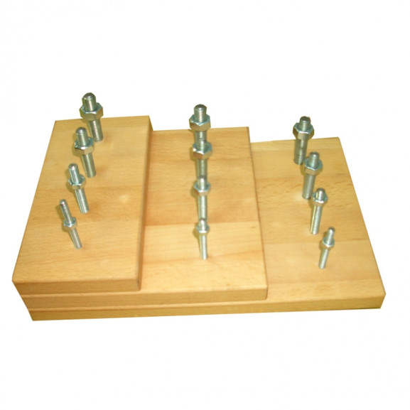 Тренажер - панель настольная с Винтами, для развития силы пальцев рук Я Могу! 404.9 - представляет собой трехступенчатую панель из натурального дерева с 12 винтами винтами и закручивающимися гайками различного диаметра. Тренажер используется для развития силы и подвижности пальцев верхних конечностей, тренировки мышц и суставов рук; для развития функций мелкой моторики, для упражнений по захвату предметов пальцами рук, для упражнений по координации движений верхних конечностей для всех возрастных групп пациентов (дети от 5 лет, подростки, взрослые, гериатрические пациенты). Материал панели - натуральный бук. Поставляется в индивидуальной картонной упаковке.Является медицинским изделием, РУ № РЗН 2018/6858 от 22.02.2018 Комплекты механических тренажеров.