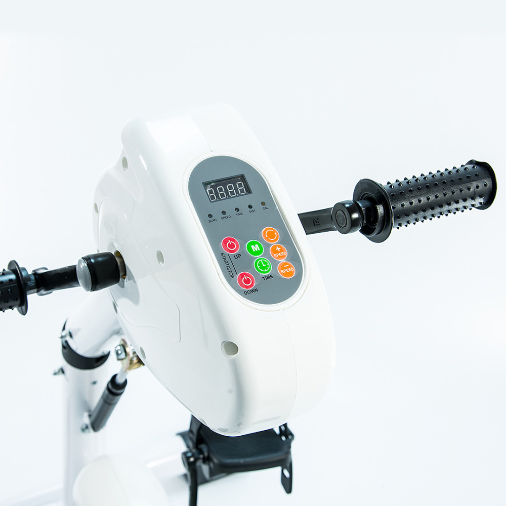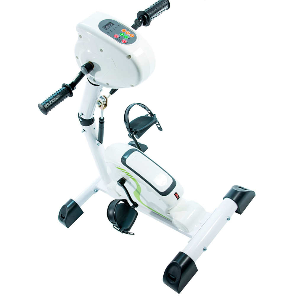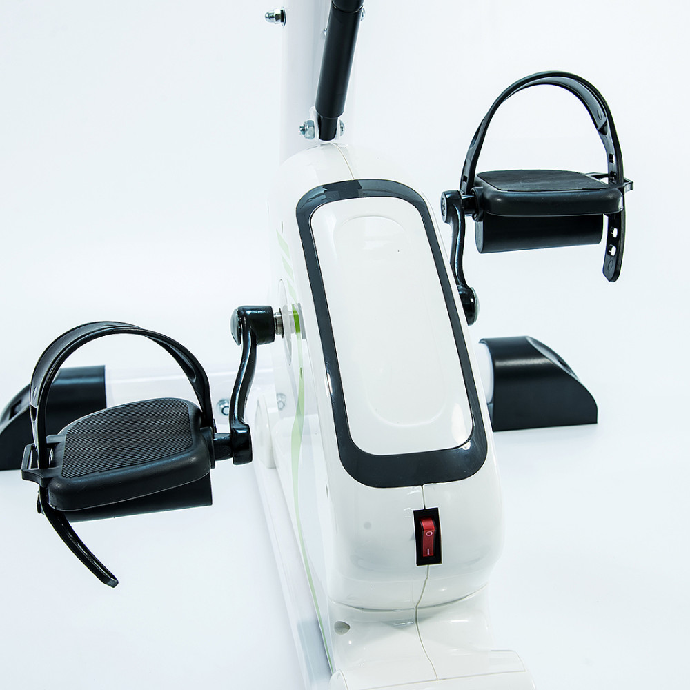 Педальный тренажер с электродвигателем предназначен для разработки верхних и нижних конечностей больных в период реабилитации или инвалидов. Тренажер используется для вращательных упражнений рук или ног. Педали в этом тренажере крутятся самостоятельно, тем самым заставляя ноги (руки) работать. Тренажер работает как в обычном режиме так и реверсивном (назад).